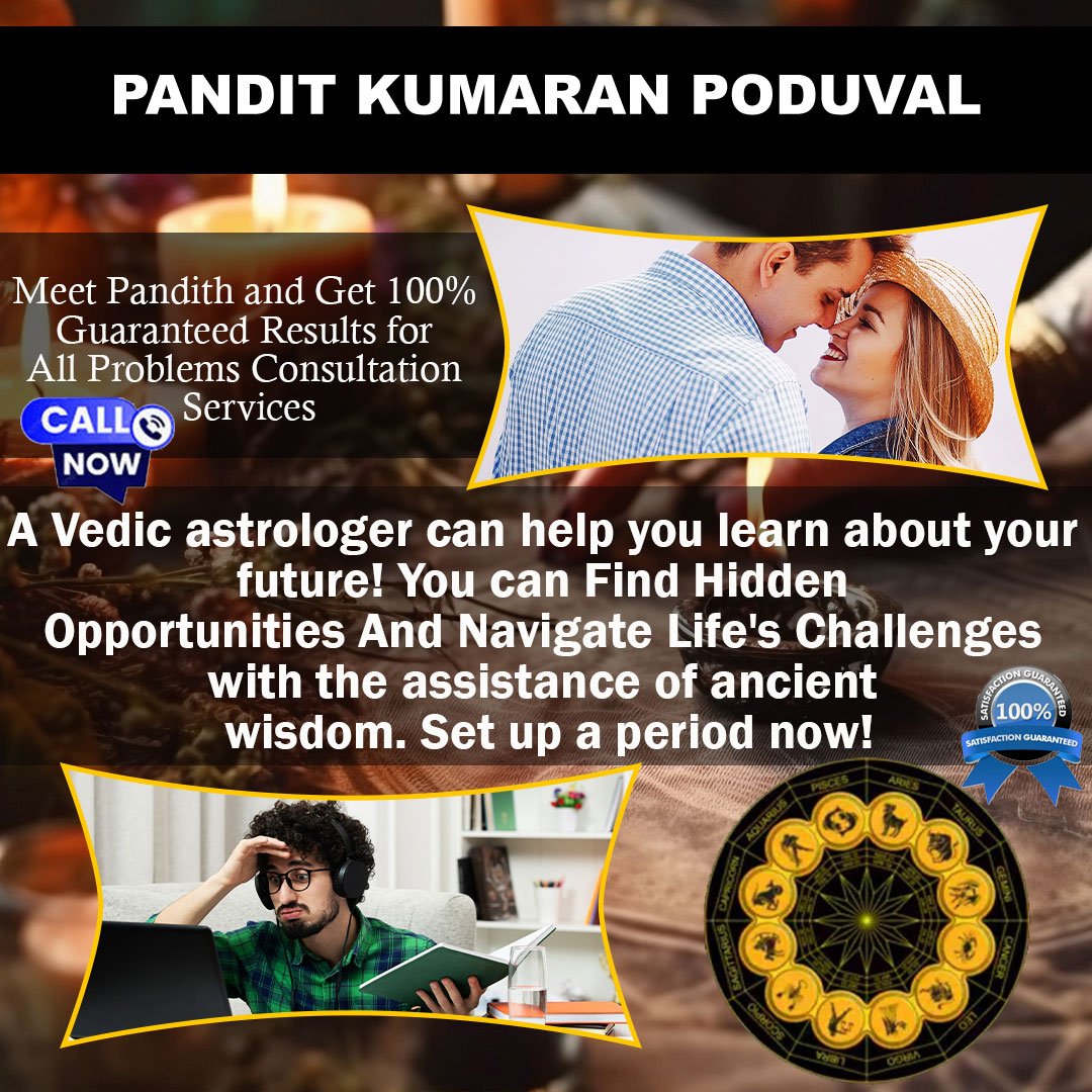 Experience the powerful traditions of Kerala Mantrika Jyothishya with the guidance of Pandit Kumaran Poduval, a renowned astrologer with decades of experience. Known for his deep knowledge in Graha Shanti, Vashikaran Removal, Business & Financial Astrology, and Kundli Matching, Panditji combines ancient wisdom with practical insights to help you lead a balanced life.